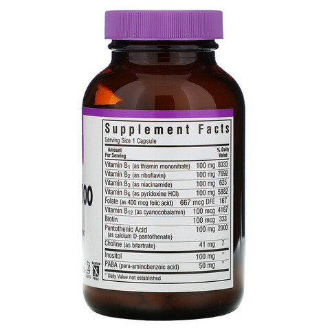 Сведения о добавке Размер порции: 1 капсула Состав порции % от суточной нормы Витамин B1 (тиамина мононитрат) 100 мг 6667 Витамин B2 (рибофлавин) 100 мг 5882 Витамин B3 (никотинамид) 100 мг 500 Витамин B6 (гидрохлорид пиридоксина) 100 мг 5000 Фолат (в форме фолиевой кислоты) 400 мкг 100 Витамин B12 (в форме цианкобаламина) 100 мкг 1667 Биотин 100 мкг 33 Пантотеновая кислота (D-пантотенат кальция) 100 мг 1000 битартрат холина 100 мг * Инозитол 100 мг * ПАБК (пара-аминобензойная кислота) 50 мг * * Суточная норма не установлена.