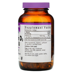 Витамин D3 5000 МЕ в мягких желатиновых капсулах производства компании Bluebonnet содержит витамин D3 (холекальциферол), который укрепляет кости и иммунитет. Он производится из жира из печени глубоководных рыб холодных морей, очищенного молекулярной дистилляцией, с использованием не содержащего ГМО шафранового масла. Выпускается в удобных для глотания мягких желатиновых капсулах для максимального усвоения и поглощения.