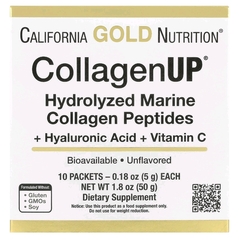 CollagenUP от California Gold Nutrition содержит пептиды морского коллагена (не бычьего происхождения), а также гиалуроновую кислоту и витамин C. Прошедший специальную обработку рыбий коллаген подвергается ферментативному гидролизу (расщеплению) до пептидов аминокислот с низким молекулярным весом, чтобы обеспечить оптимальную