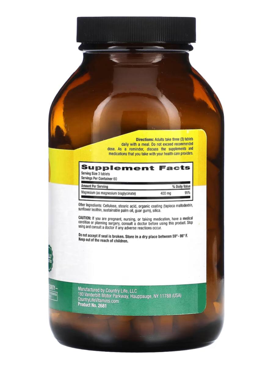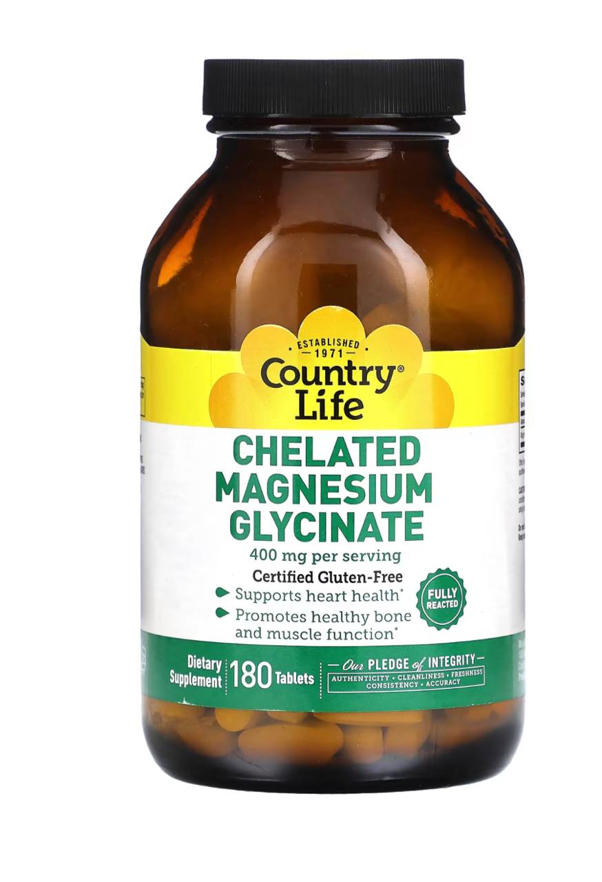 Глицинат магния от Country Life полностью реагирует с аминокислотным хелатом. Он является биодоступным источником магния для организма. Магний необходим более чем для 300 биохимических реакций в организме и способствует расслаблению мышц. Он также может поддерживать выработку энергии, работу сердечно-сосудистой системы, здоровый иммунитет и крепкие кости.