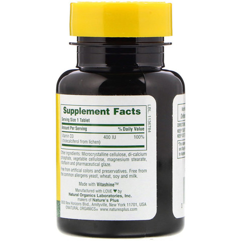 Nature's Plus, Vitamin D3, 400 IU, 90 Tablets