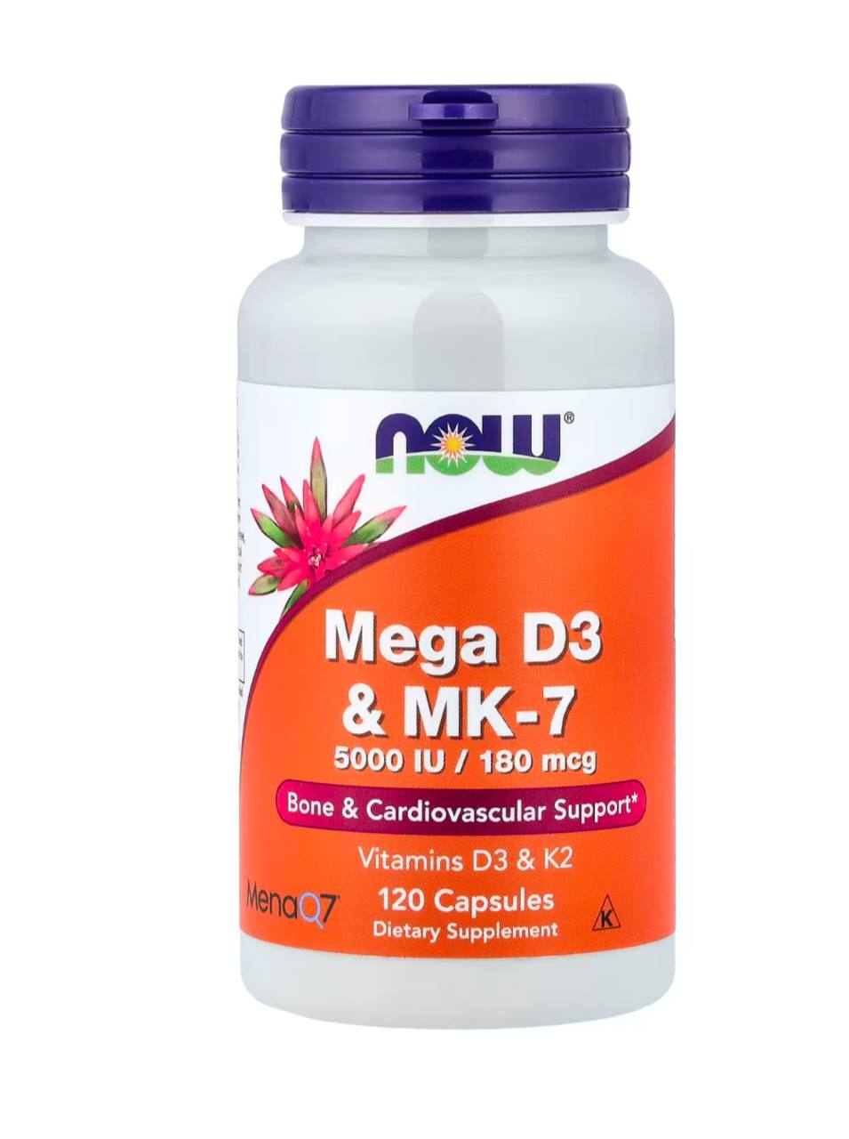 Mega D3 и MK-7 от NOW® содержит витамины D3 и K2 — два питательных вещества, роль которых в поддержании здоровья костей, зубов и сердечно-сосудистой системы тщательно исследовалась. Витамин D3 вместе с кальцием поддерживает здоровье костей, а недавние исследования показывают, что он также важен для здоровья иммунной системы. MK-7 MenaQ7® — это уникальная биодоступная форма витамина К2, изготовленная без сои, которая играет ключевую роль в поддержании здоровья артерий благодаря своей способности обеспечивать правильный обмен кальция в кровеносных сосудах и артериях. Витамин K2 также важен для формирования крепких и здоровых костей.