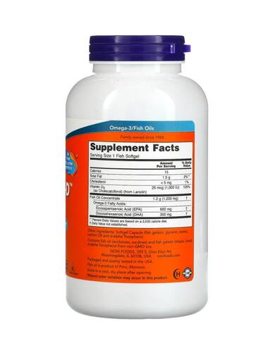 Ultra Omega 3-D™ от NOW® — это наше самое эффективное средство с омега-3, содержащее 600 мг ЭПК и 300 мг ДГК в каждой мягкой таблетке. Продукт содержит лимонное масло, а также 1000 МЕ витамина D3.