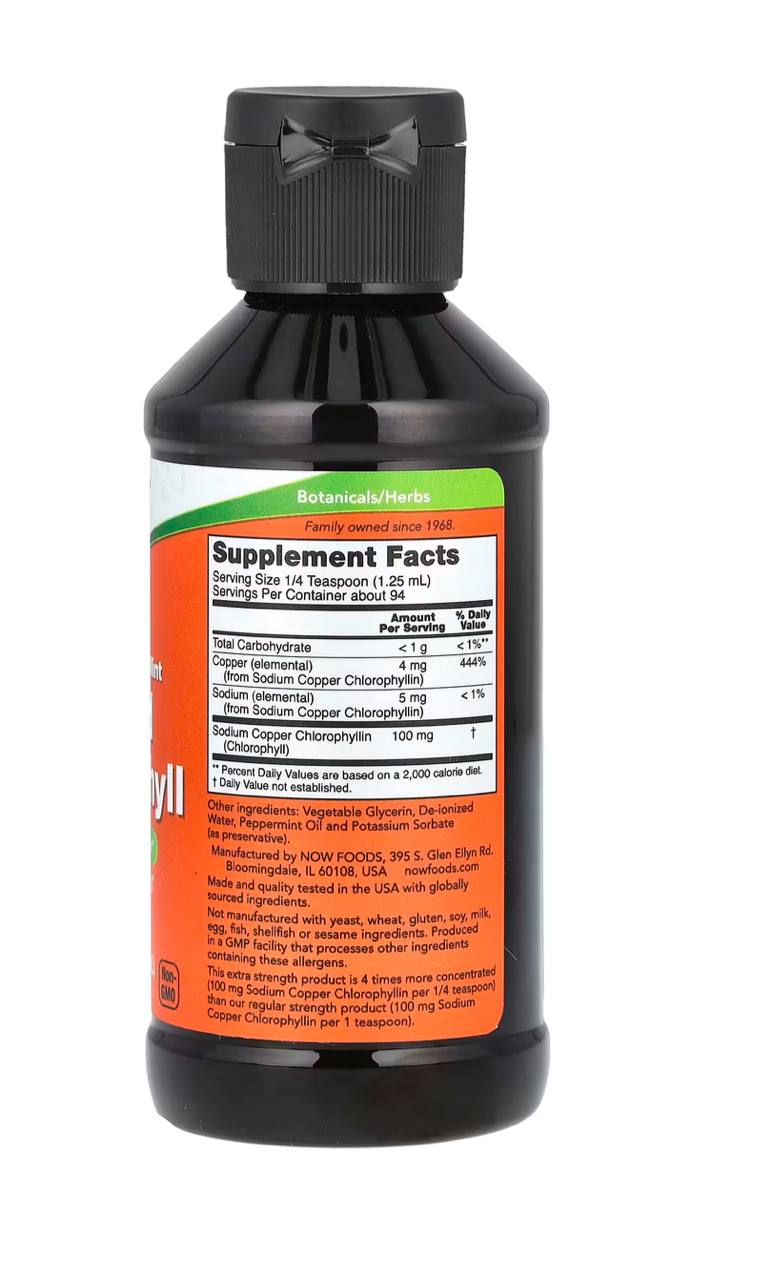 Этот продукт повышенной силы действия в 4 раза более концентрированный (100 мг натрий-медного хлорофиллина на 1/4 чайной ложки, чем наш продукт с обычной силой действия (100 мг натрий-медного хлорофиллина на 1 чайную ложку).