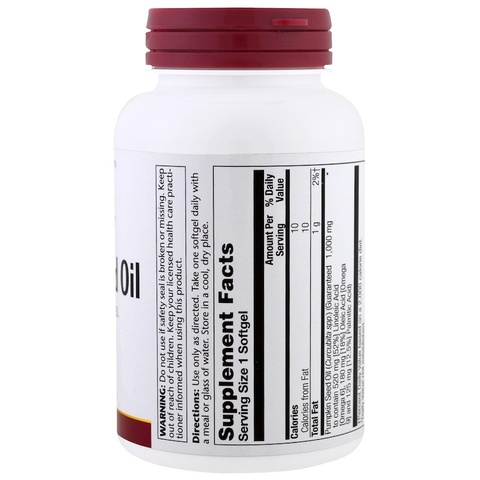 | Масло тыквенного семени (Curcubia spp.) (Гарантированно содержит 520 мг [52%] линолевая кислота [Омега 6], 180 мг [18%] Олеиновая кислота [Омега-9] и 125 мг [12,5%] Пальмитиновая кислота) | 1000 мг | * |